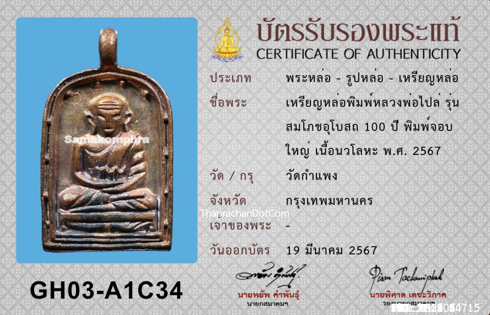 ล็อคเก็ตพระพุทธเจ้า หลวงพ่อผินะ วัดสนมลาว จ.สระบุรี