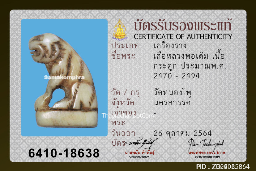 เสือกระดูกแกะหลวงพ่อเรือน วัดบางเหี้ย จ.สมุทรปราการ