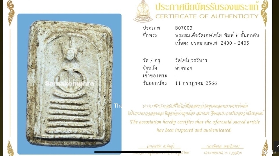 พระสมเด็จวัดเกษไชโย หกชั้นอกตัน