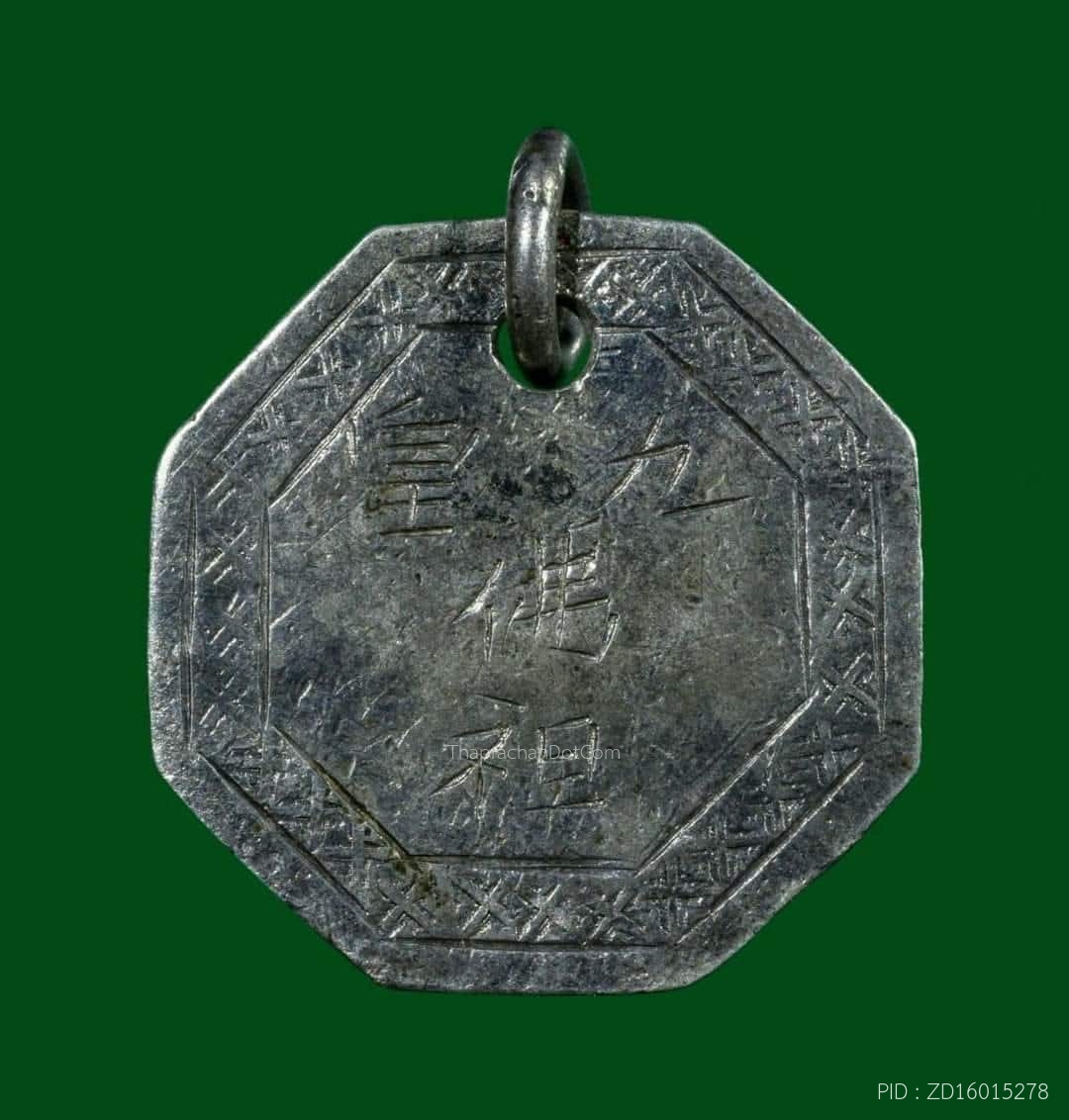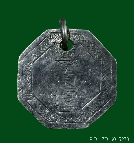 เหรียญโป๊ยข่วย ยันต์แปดทิศ เนื้อเงินเก่าขึ้นถม