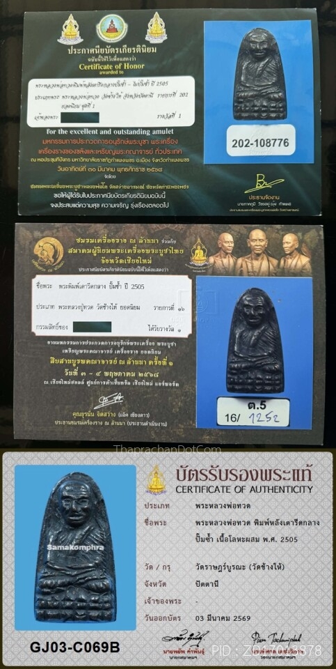 หลวงปู่ทวด หลังเตารีด 05 กลางปั๊มซ้ำ สวยแชมป์