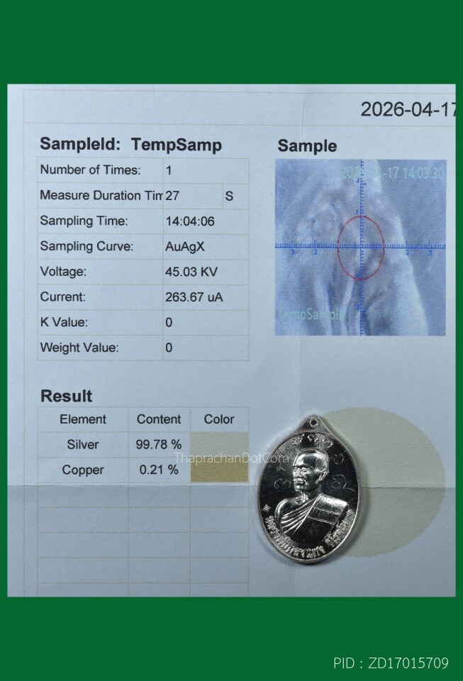 เหรียญศรัทธา ลป.กองแพง วัดป่าสันติวัน เนื้อเงิน หมายเลข๘