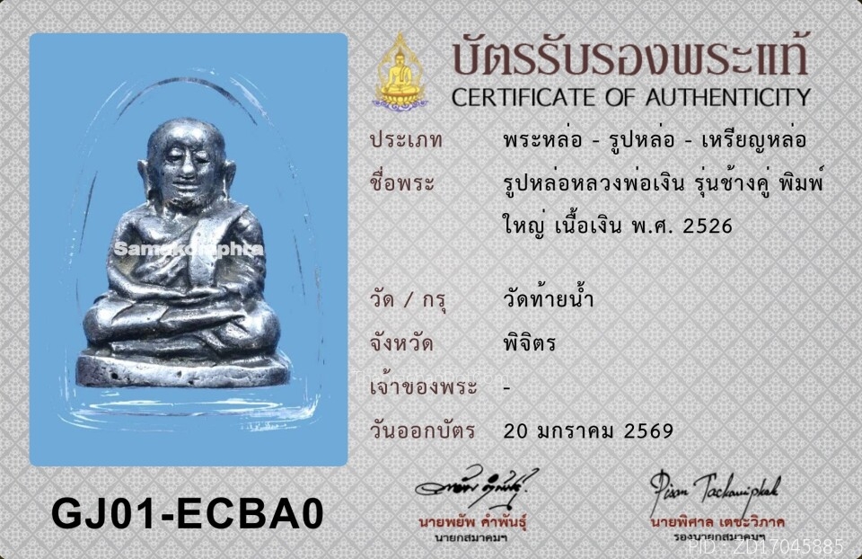 รูปหล่อ หลวงพ่อเงิน รุ่นช้างคู่ เนื้อเงิน ปี26