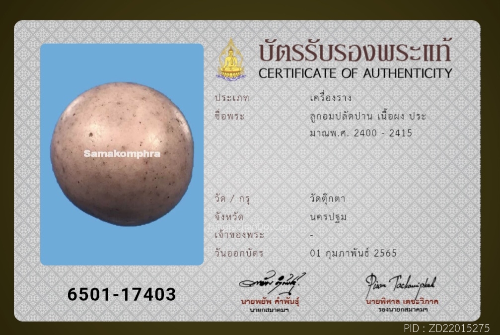 พระปิดตาหลวงพ่อทับ วัดสุวรรณาราม(วัดทอง) บัตรสมาคม