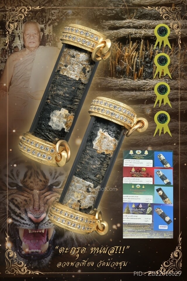 “ตะกรุดหนังหน้าผากเสือ4รางวัล“หลวงพ่อเที่ยง ม่วงชุม