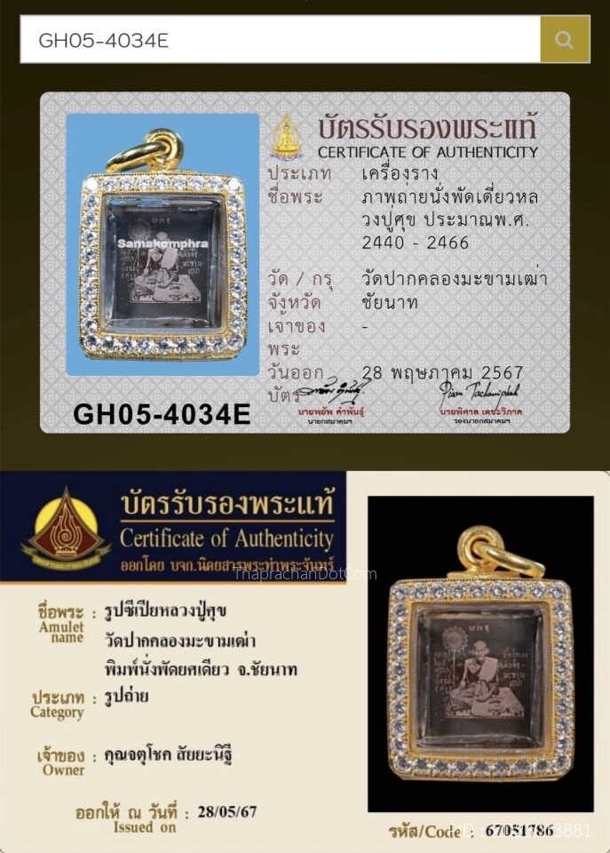 หลวงพ่อปาน วัดบางนมโค พิมพ์ไก่หางพวง ติดที่1งานคิงพาวเวอร์