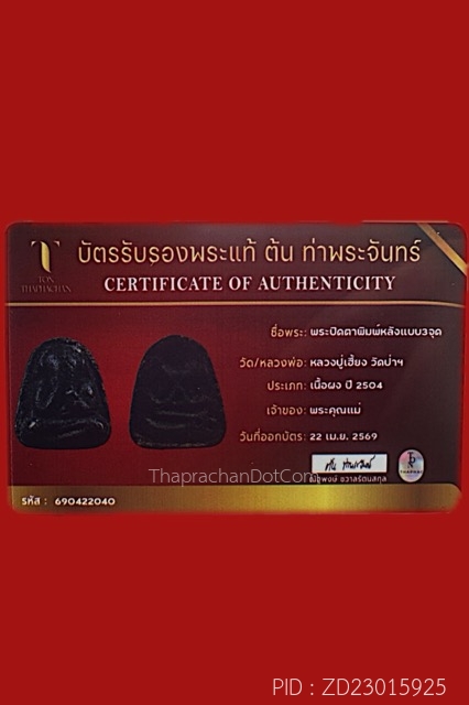 พระปิดตาหลวงพ่อเปล่ง วัดหลังศาลประสิทธิ์ พร้อมบัตรสมาคม