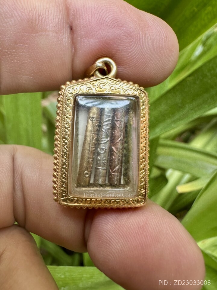 พระปิดตา เนื้อสำริดเงิน พิมพ์เข่าบุ่มหลังยันต์ วัดโพธิ์เอน