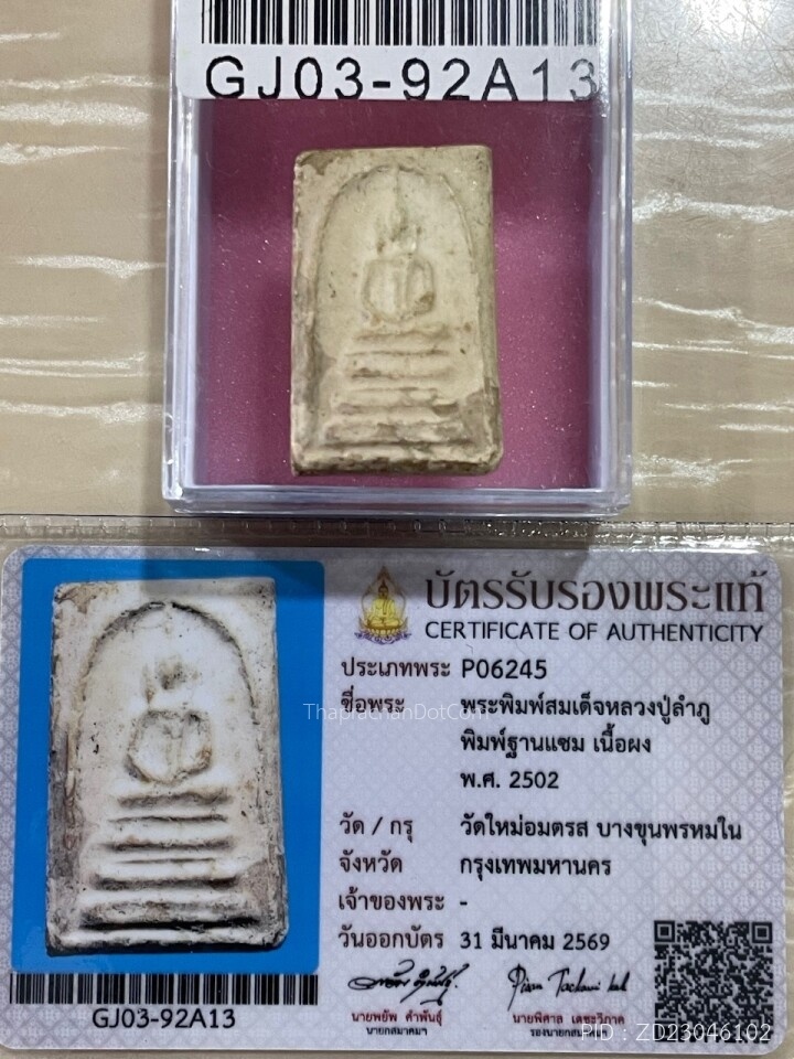 +บัตรสมาคม สมเด็จพิมพ์ใหญ่ หลวงปู่ลำภูลงกรุ เม็ดบางขุนพรหม