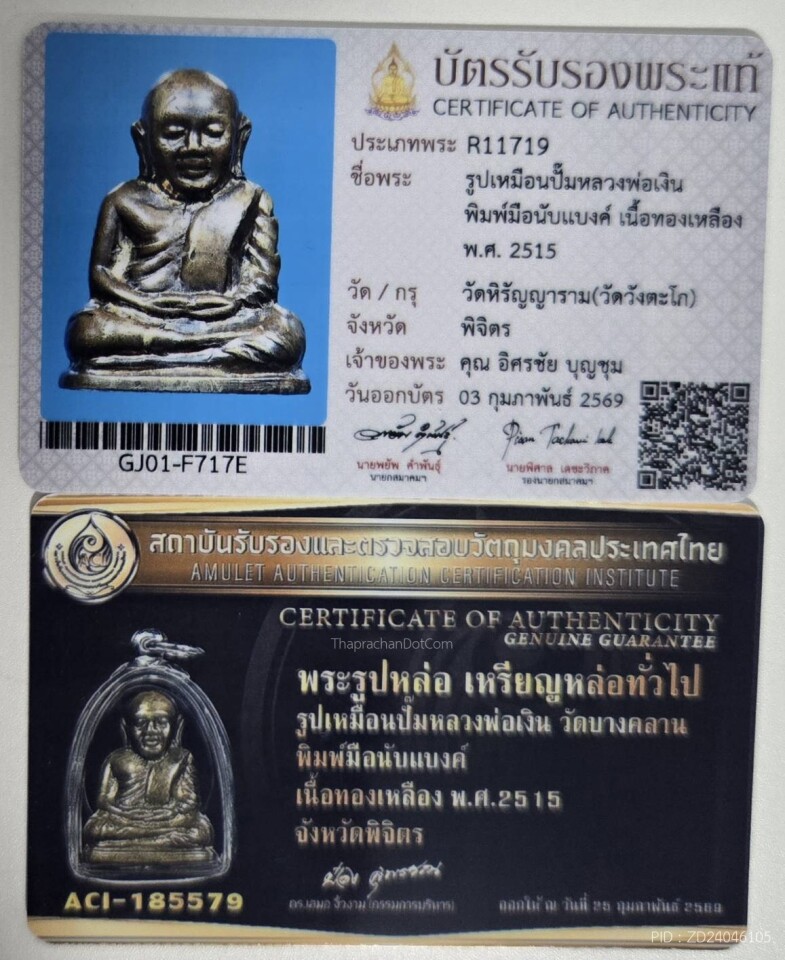 หลวงพ่อเงินวัดบางคลานปี15พิมพ์นับแบงค์